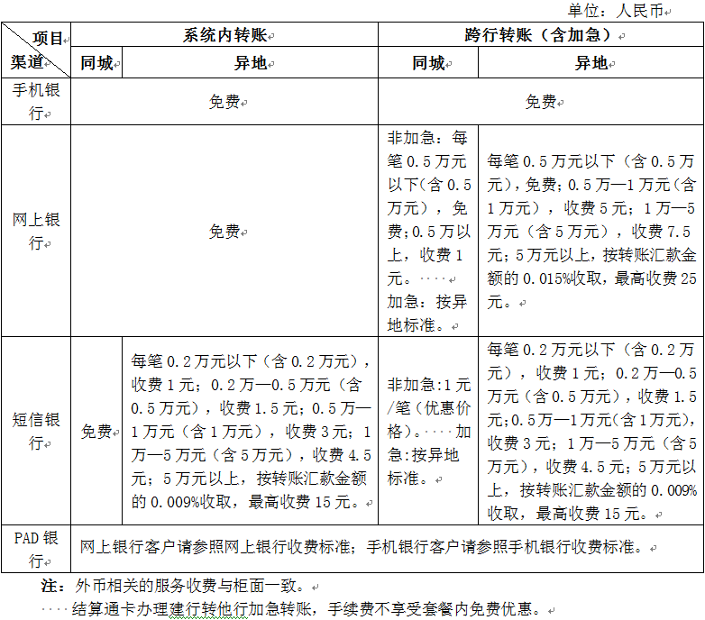 个人电子银行结算手续费标准