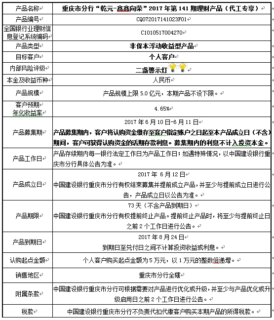 3.中国建设银行重庆市分行可根据市场情况等调整产品规模上、下限,并最迟于调整规模上下限当日进行公告。