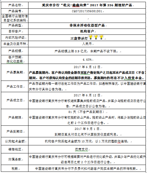 3.中国建设银行重庆市分行可根据市场情况等调整产品规模上、下限,并最迟于调整规模上下限当日进行公告。