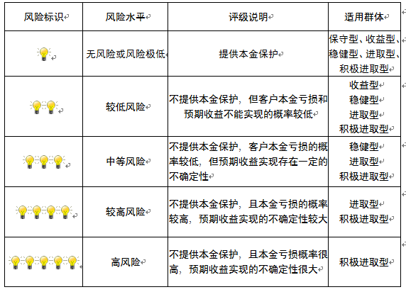 ,风险水平属于中等风险。最不利情况下,您将损失全部收益甚至包括全部本金。本理财产品适用于稳健型、进取型 、积极进取型客户。