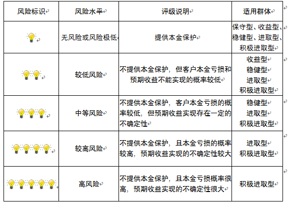 ,风险水平属于中等风险。最不利情况下,您将损失全部收益甚至包括全部本金。本理财产品适用于稳健型、进取型 、积极进取型客户。