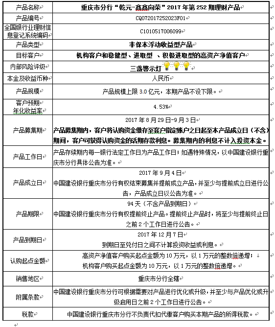 2017年第252期理财产品说明书
