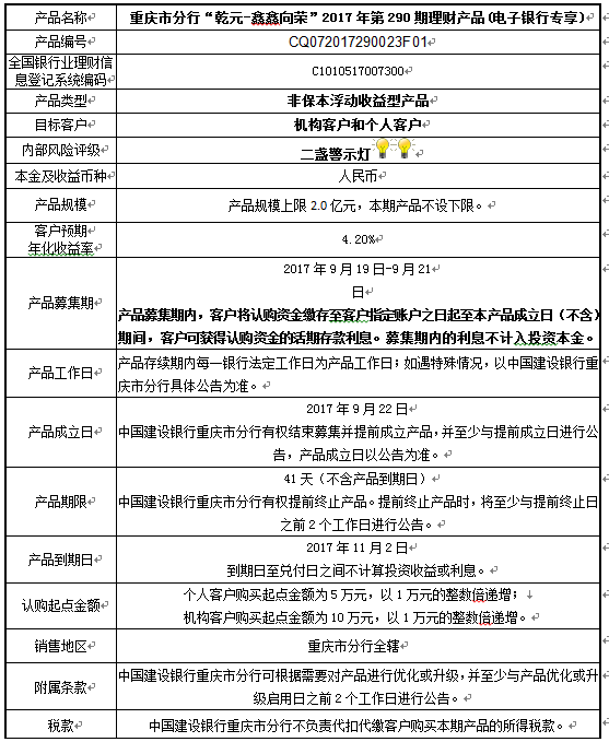 2017年第290期理财产品说明书