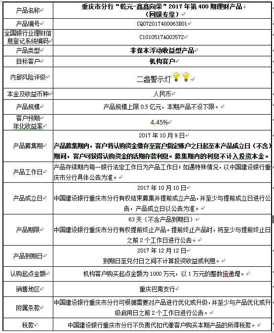 3.中国建设银行重庆市分行可根据市场情况等调整产品规模上、下限,并最迟于调整规模上下限当日进行公告。