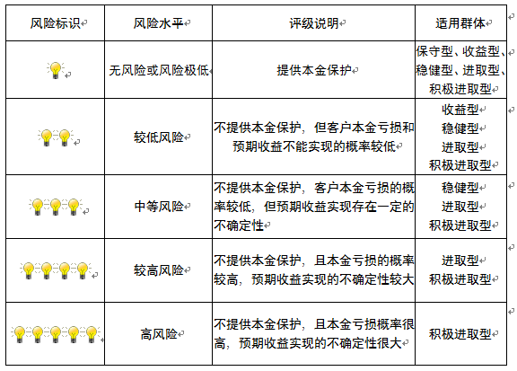 ,风险水平属于中等风险。最不利情况下,您将损失全部收益甚至包括全部本金。本理财产品适用于稳健型、进取型 、积极进取型客户。