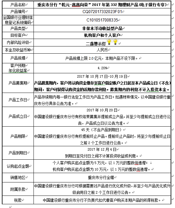2017年第332期理财产品说明书