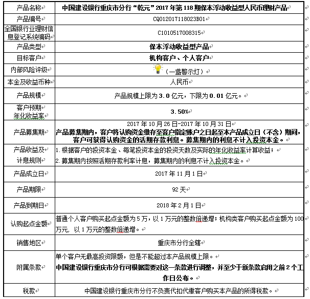 中国建设银行重庆市分行“乾元”2017年第118期