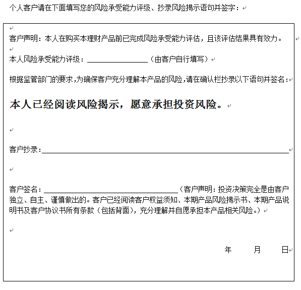 人民币理财产品2018年第002期风险揭示书