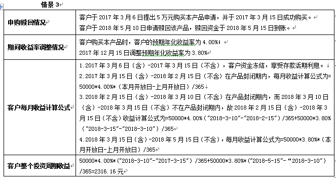 假设客户投资本金5万元,实际参与理财的天数20天,实际年化收益率4.00%。