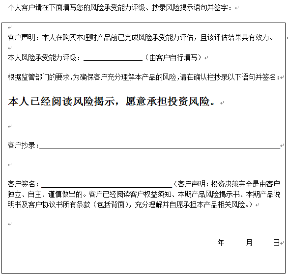 人民币理财产品2018年第201期风险揭示书