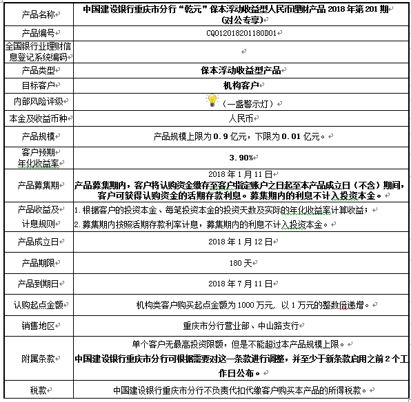 中国建设银行重庆市分行“乾元” 保本浮动收益型