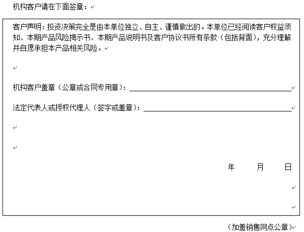 您签署本风险揭示书、客户协议书,并将资金委托给中国建设银行重庆市分行运作是您真实的意思表示。本风险揭示书及相应的客户协议书、产品说明书、客户权益须知将共同构成贵我双方理财合同的有效组成部分。