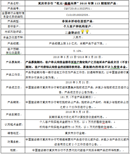 3.中国建设银行重庆市分行可根据市场情况等调整产品规模上、下限,并最迟于调整规模上下限当日进行公告。