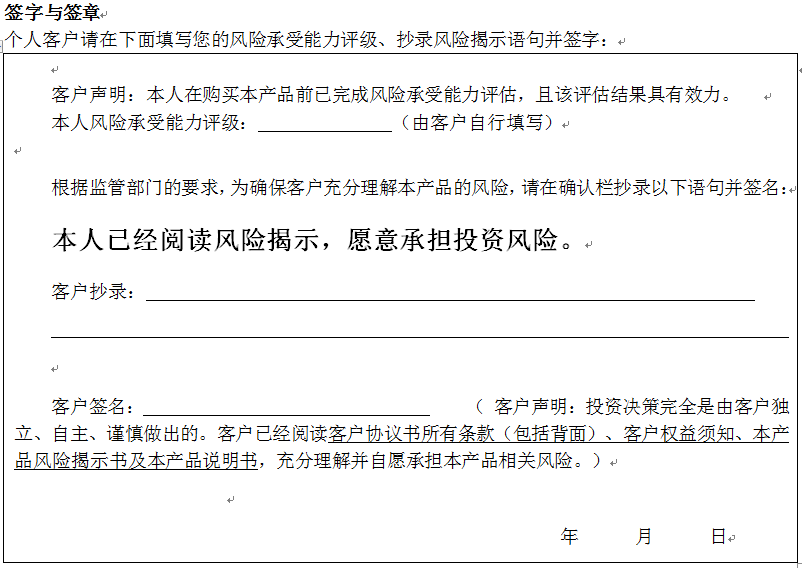 您签署本风险揭示书、客户协议书,并将资金委托给中国建设银行重庆市分行运作是您真实的意思表示。本风险揭示书及相应的客户协议书、产品说明书、客户权益须知将共同构成贵我双方理财合同的有效组成部分。