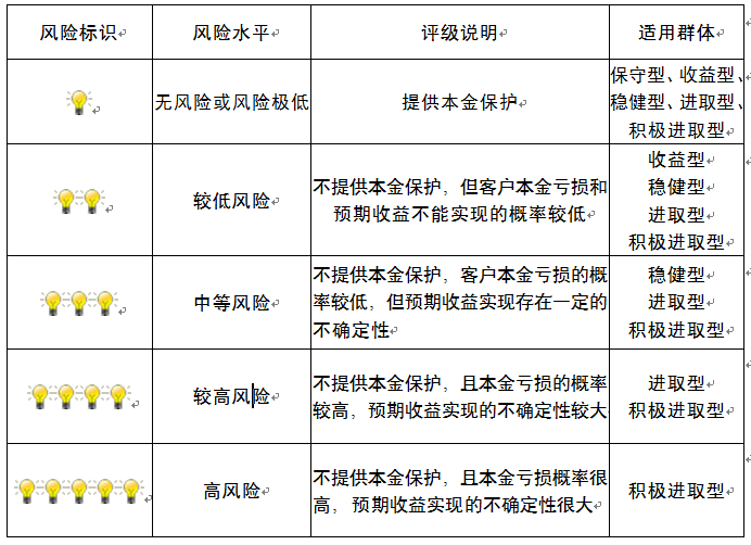 ,风险水平属于中等风险。最不利情况下,您将损失全部收益甚至包括全部本金。本理财产品适用于稳健型、进取型 、积极进取型客户。