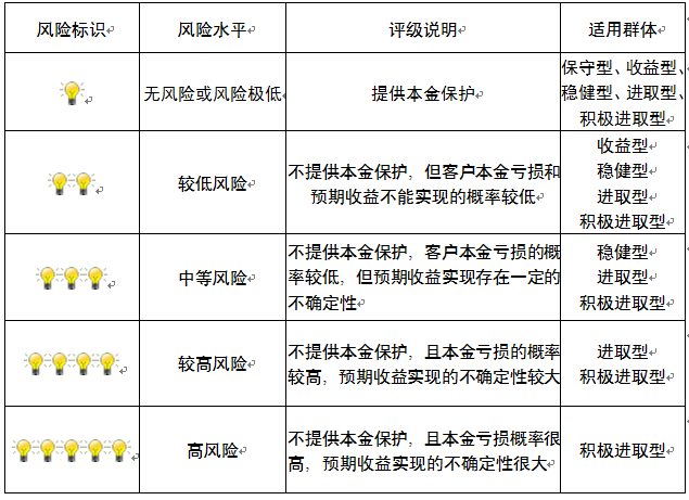 ,风险水平属于较低风险。最不利情况下,您将损失全部收益甚至包括全部本金。本理财产品适用于收益型、稳健型、进取型 、积极进取型客户。