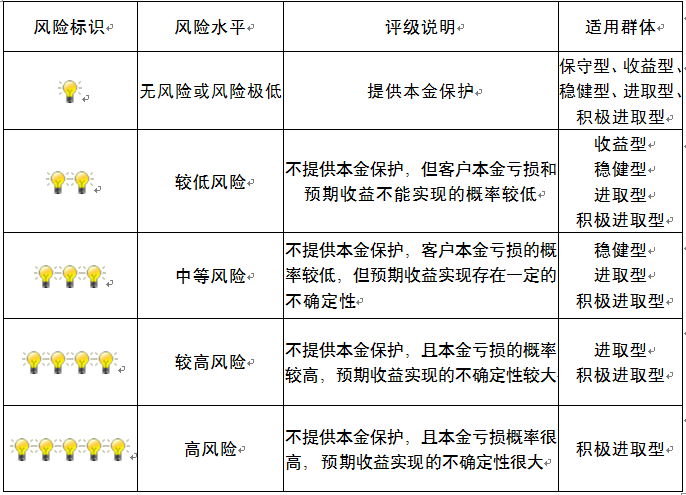 ,风险水平属于中等风险。最不利情况下,您将损失全部收益甚至包括全部本金。本理财产品适用于稳健型、进取型 、积极进取型客户。