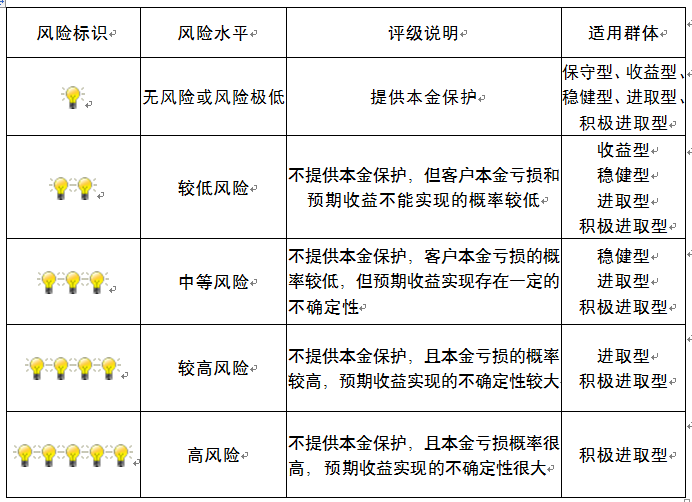 ,风险水平属于较低风险。最不利情况下,您将损失全部收益甚至包括全部本金。本理财产品适用于收益型、稳健型、进取型 、积极进取型客户。