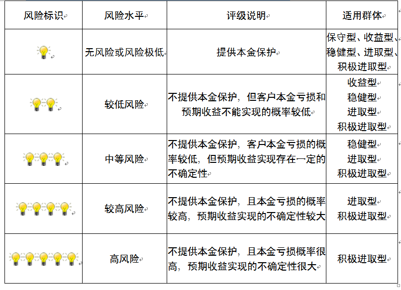 ,风险水平属于中等风险。最不利情况下,您将损失全部收益甚至包括全部本金。本理财产品适用于稳健型、进取型 、积极进取型客户。