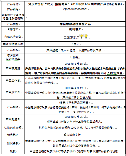 3.中国建设银行重庆市分行可根据市场情况等调整产品规模上、下限,并最迟于调整规模上下限当日进行公告。