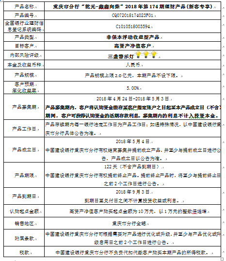 2018年第174期理财产品说明书