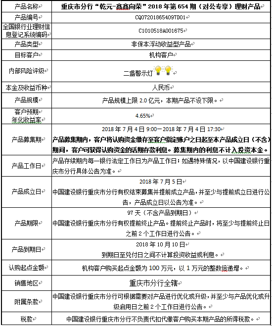 3.中国建设银行重庆市分行可根据市场情况等调整产品规模上、下限,并最迟于调整规模上下限当日进行公告。