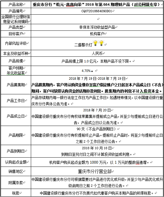 2018年第664期理财产品说明书