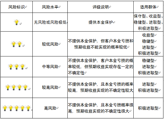 本产品为非保本浮动收益型理财产品,不保证本金和收益,请您充分认识投资风险,谨慎投资。本期产品期限为150天(中国建设银行有权对产品进行展期或提前终止),存续期内,产品不接受申购或赎回申请。本期产品内部风险评级级别为二盏警示灯,风险水平属于较低风险。最不利情况下,您将损失全部收益甚至包括全部本金。本理财产品适用于收益型、稳健型、进取型 、积极进取型客户。