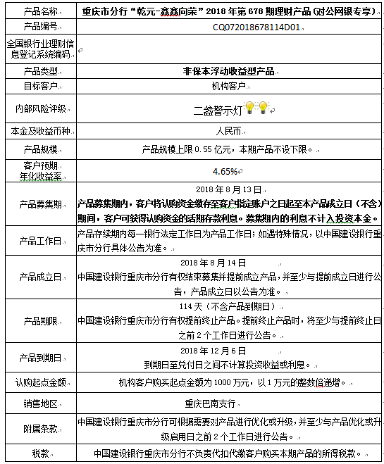 3.中国建设银行重庆市分行可根据市场情况等调整产品规模上、下限,并最迟于调整规模上下限当日进行公告。