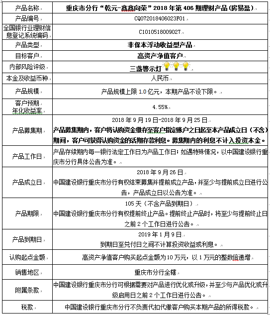 2018年第406期理财产品说明书