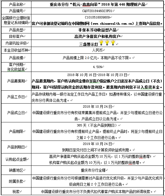 2018年第446期理财产品说明书