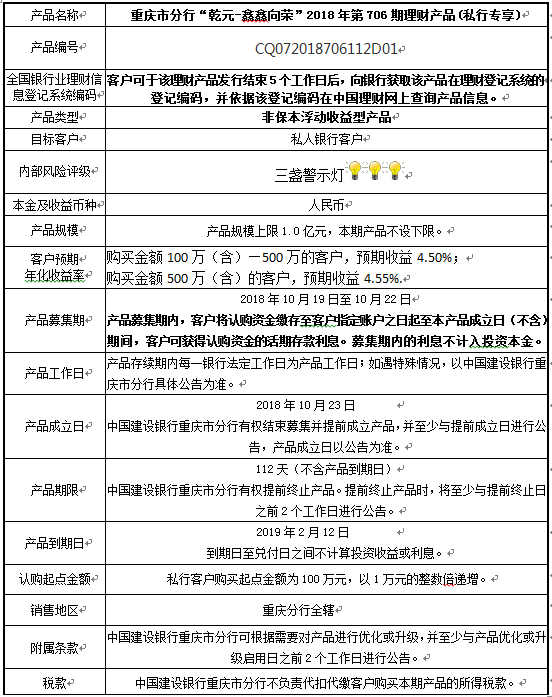 3.中国建设银行重庆市分行可根据市场情况等调整产品规模上、下限,并最迟于调整规模上下限当日进行公告。