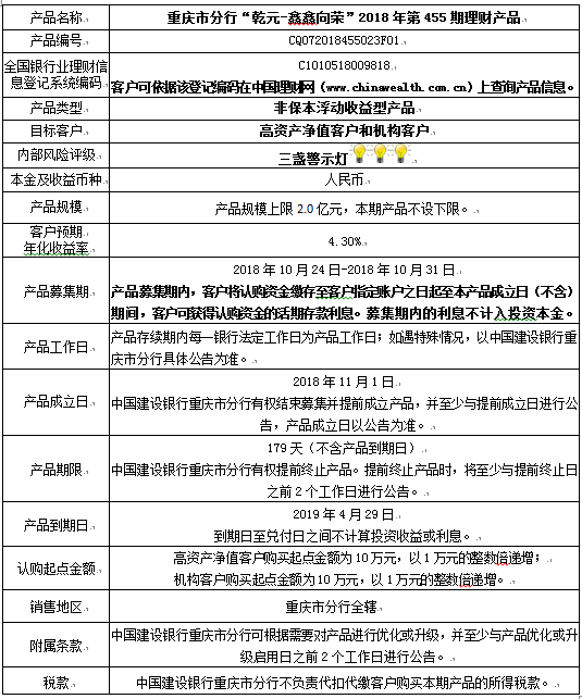 3.中国建设银行重庆市分行可根据市场情况等调整产品规模上、下限,并最迟于调整规模上下限当日进行公告。