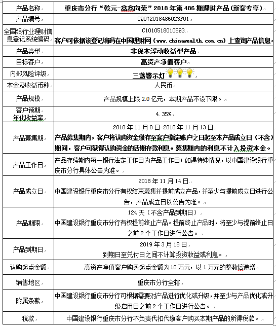 2018年第486期理财产品说明书