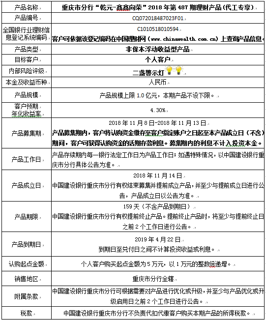 2018年第487期理财产品说明书