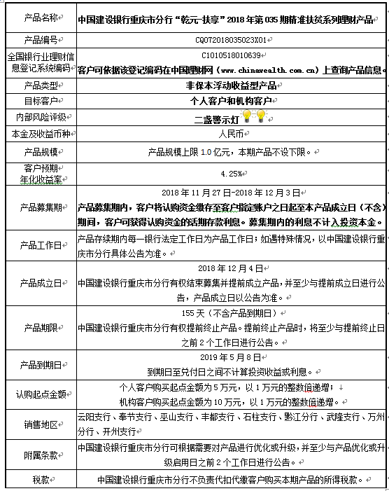 3.中国建设银行重庆市分行可根据市场情况等调整产品规模上、下限,并最迟于调整规模上下限当日进行公告。