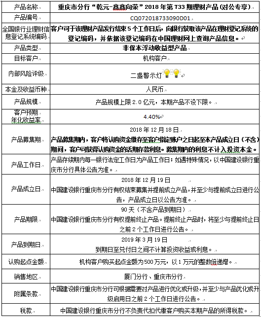 3.中国建设银行重庆市分行可根据市场情况等调整产品规模上、下限,并最迟于调整规模上下限当日进行公告。