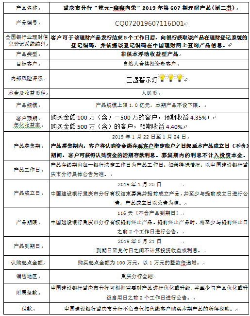 3.中国建设银行重庆市分行可根据市场情况等调整产品规模上、下限,并最迟于调整规模上下限当日进行公告。