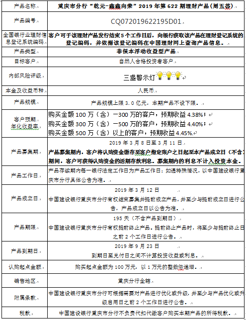 3.中国建设银行重庆市分行可根据市场情况等调整产品规模上、下限,并最迟于调整规模上下限当日进行公告。