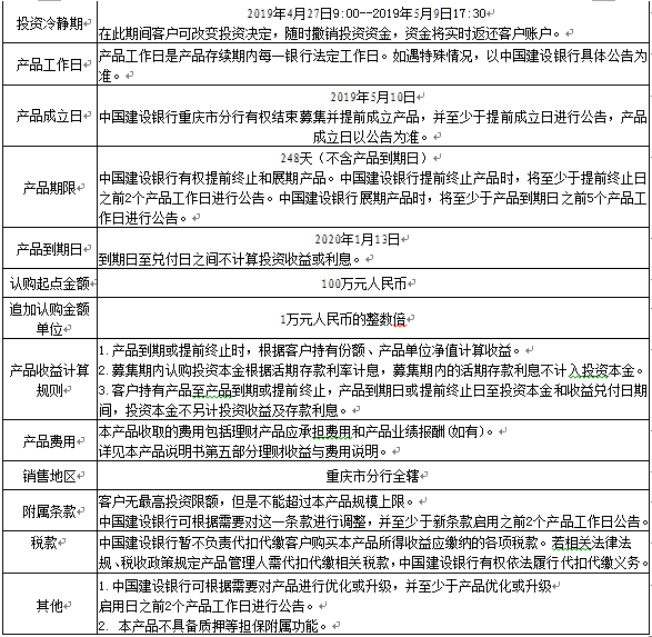 1.本产品不保障本金和收益安全,中国建设银行重庆市分行发行本产品不代表对本产品的任何保本或收益承诺。