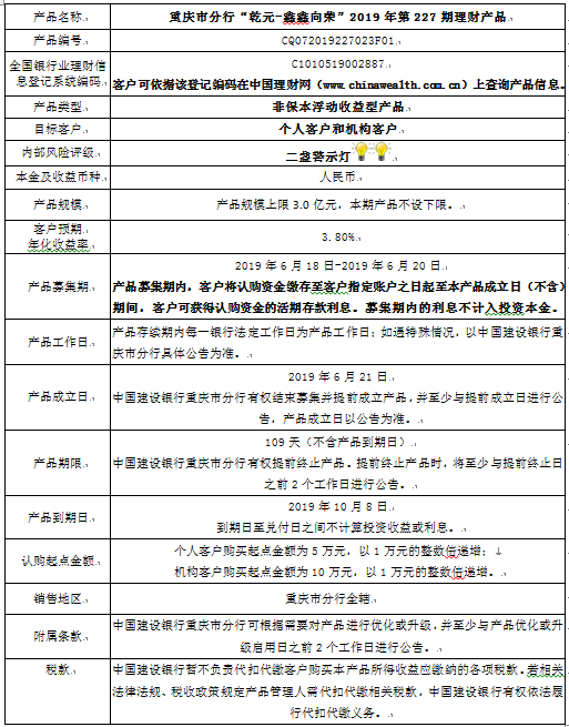 2019年第227期理财产品说明书