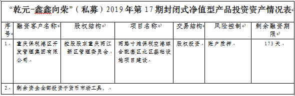 中国建设银行重庆市分行“乾元-鑫鑫向荣”(私募)2019年