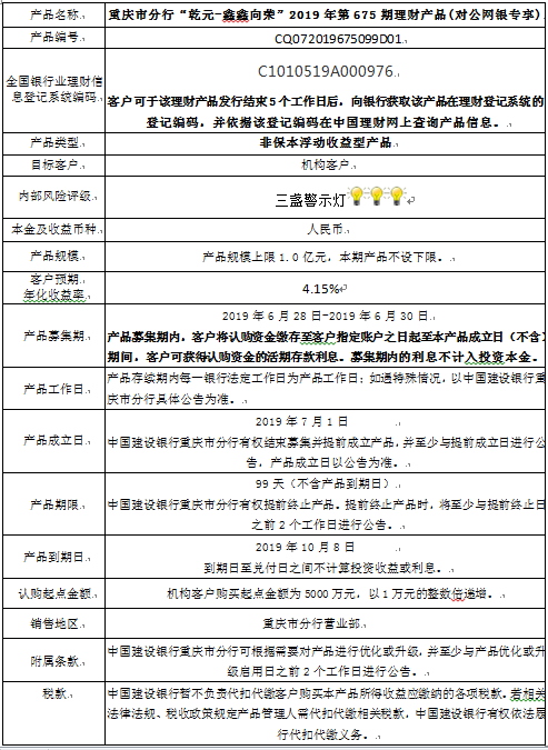 3.中国建设银行重庆市分行可根据市场情况等调整产品规模上、下限,并最迟于调整规模上下限当日进行公告。