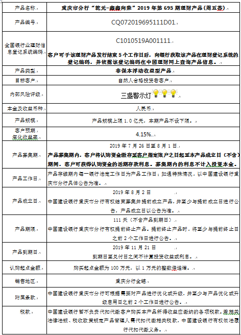 2019年第695期理财产品说明书