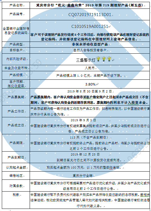 3.中国建设银行重庆市分行可根据市场情况等调整产品规模上、下限,并最迟于调整规模上下限当日进行公告。