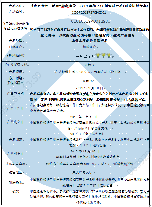 3.中国建设银行重庆市分行可根据市场情况等调整产品规模上、下限,并最迟于调整规模上下限当日进行公告。