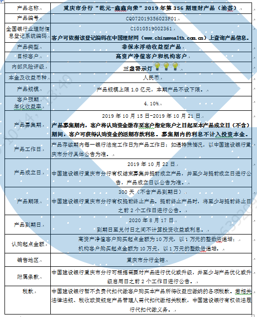 2019年第356期理财产品说明书