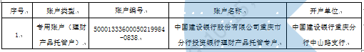 理财产品托管人:中国建设银行重庆市分行