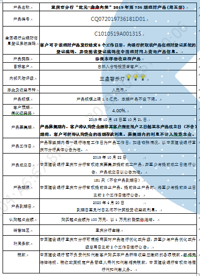 3.中国建设银行重庆市分行可根据市场情况等调整产品规模上、下限,并最迟于调整规模上下限当日进行公告。