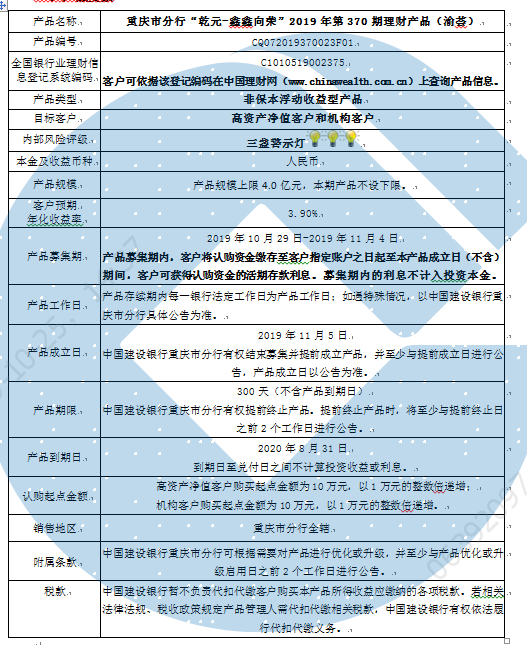3.中国建设银行重庆市分行可根据市场情况等调整产品规模上、下限,并最迟于调整规模上下限当日进行公告。